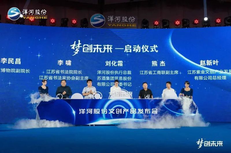 活动现场,刘化霜携手嘉宾共同启动“梦创未来”洋河股份文创产品项目,洋河股份与经销商代表正式签约。