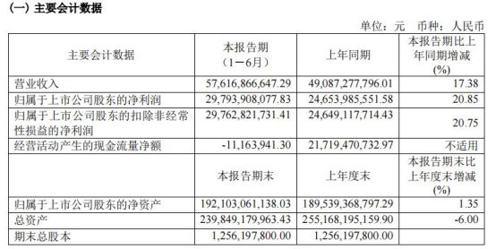 8月2日晚间,贵州茅台发布2022年半年度报告称,上半年公司实现营收576.17亿元,同比增长17.38%;实现归属于上市公司股东的净利润 297.94 亿元,同比增长 20.85%。