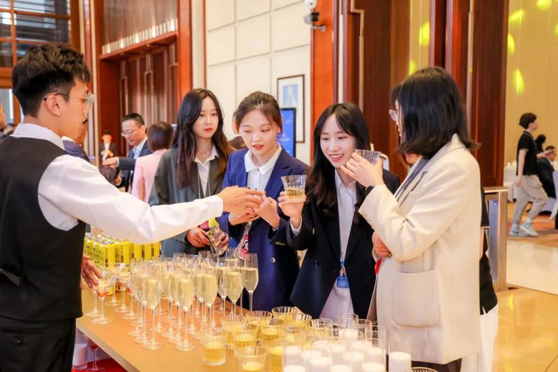 晚宴外场,精心设置了鸡尾酒调酒台,以五粮液为基酒特别调制的“五谷罗尼”鸡尾酒,以及“唐·重碧春酒”“宋·姚子雪曲”“元·琥珀浓”“明·叙州露”纷纷亮相,以西方熟悉的形式讲述中式审美,创新展现五粮液深厚悠远的文化底蕴、多元包容的创新活力,吸引众多中外嘉宾驻足体验。