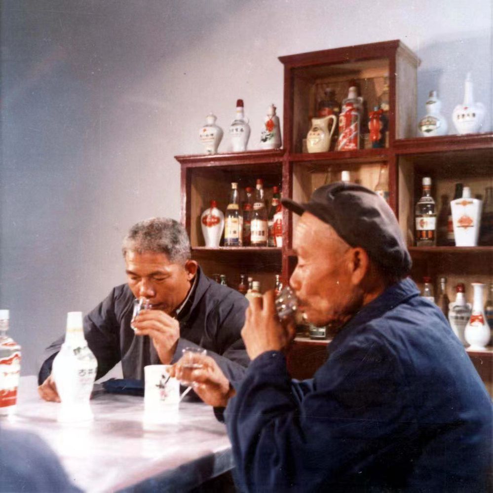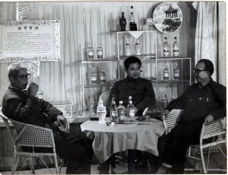 1980年,古井贡酒第一任厂长聂广荣与老制曲工皇凤勤一起探讨如何提高古井贡酒的质量。