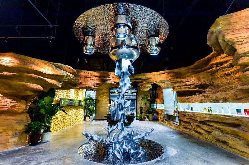 研酒馆将成都产区(邛崃)的冰川水、崖谷地等独特的自然元素重现,并将邛崃温度、湿度、风速度、日照度、海拔度、土壤成分度、粮食品质度、水质度、酿酒工艺度等“黄金九度”的美酒基因具像化,展现出优质粮种在邛崃得天独厚的自然环境中,落地、发芽、生长、灌浆、成熟、收获,得以酝酿成一杯美酒的过程。