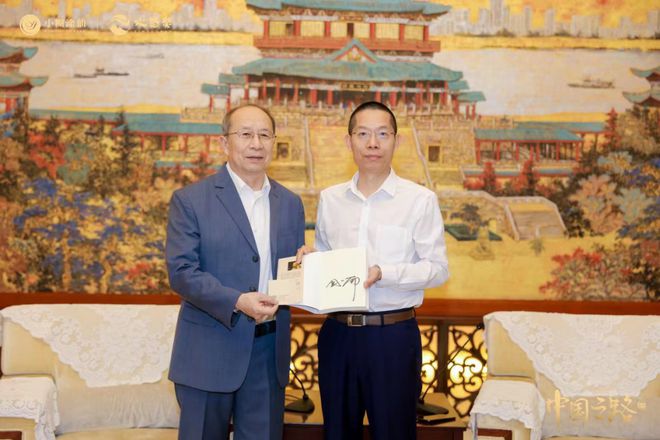 ▲金一南教授向小糊涂仙酒业集团董事、副总裁梁国杰先生赠书
