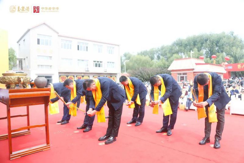 其三,见证历史变迁和突破,实现三重维度的文化回归。在谢师环节,特别设置黑龙江省玉泉酒业有限责任公司总工程师、玉泉酒酿造技艺第六代传承人张嘉鑫向玉泉酒酿造技艺第五代非物质文化遗产代表性传承人张玉柱行谢师礼的环节,是代代薪火相传的佐证,更是东北区域酒历史的缩影。