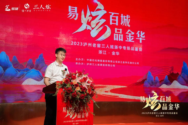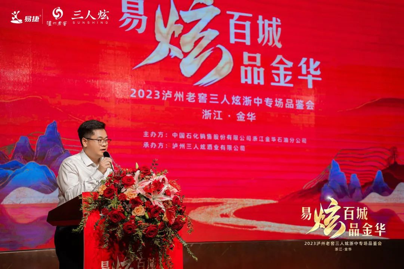7月28日,以“易炫百城,炫品金华”为主题,2023泸州老窖三人炫浙中专场品鉴会成功举办。中石化易捷浙江公司、中国石化销售股份有限公司金华石油分公司、泸州三人炫酒业有限公司等相关机构负责人出席活动。
