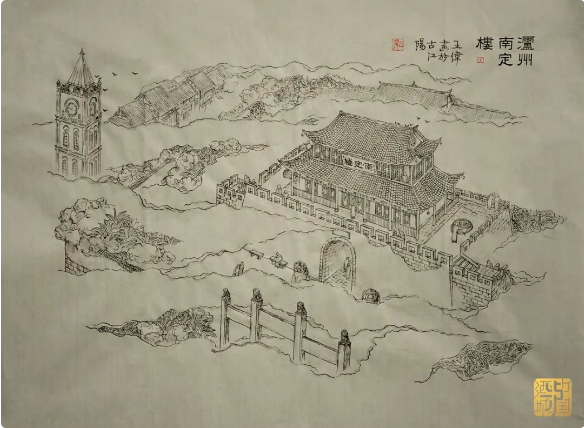 ▲泸州摄影家王伟根据史料描述手绘的南定楼