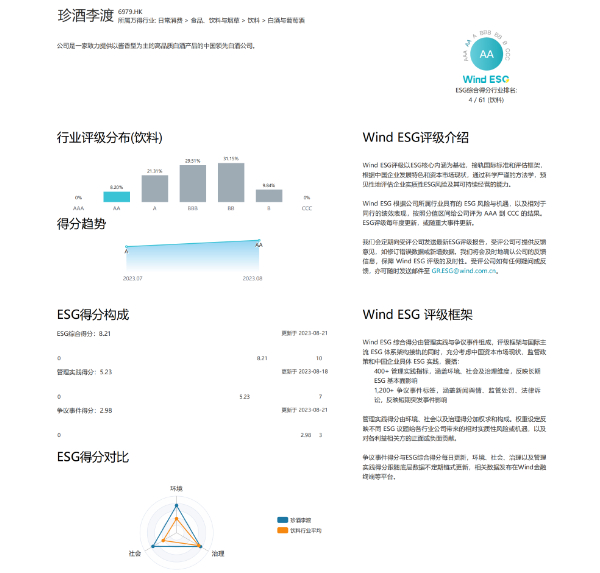 (2023年珍酒李渡获万得ESG“AA”评级)