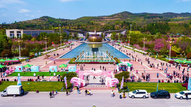 盛典现场,巨型“醉美樱花”亮相金徽酒文化广场,广大游客朋友纷纷合影留念,共同见证春日烂漫。