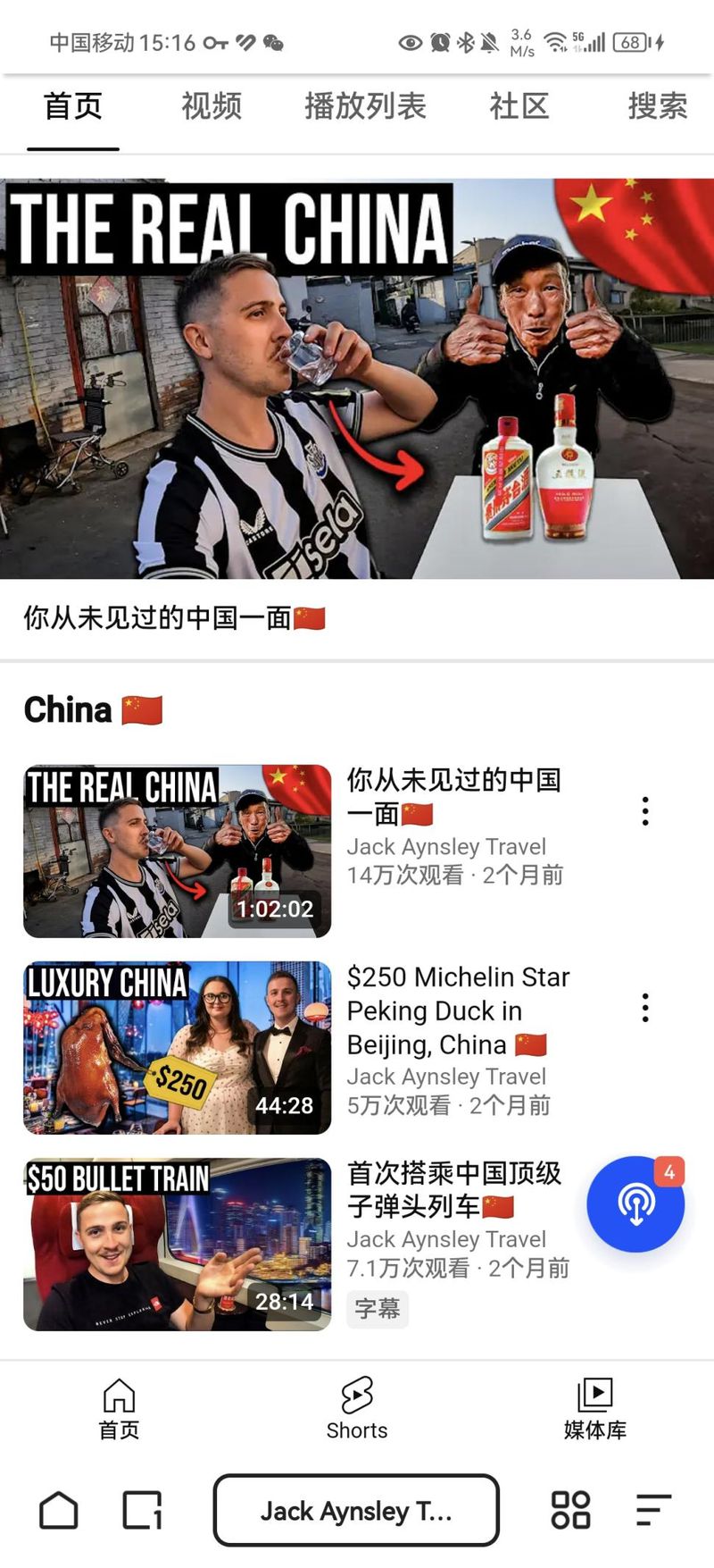 而在这些视频中要属顶流的还属来自英国的“酒仙夫妇”Jack和Paige。他们与众多国外博主一样,开始的内容都是“城建”“美食”“风景”三件套,尽管播放数据较此前其它国家的旅游视频高出不少(由于对中国的刻板印象使得外国观众对中国分外好奇),但在一众“China travel”视频中并不突出,直到遇到中国白酒,酒仙夫妇才迎来了自己的巅峰时刻。