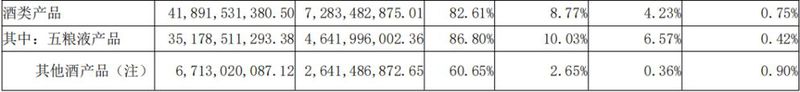 酒类产品中,五粮液产品营收为351.79亿元,同比增长10.03%,占酒类总营收83.98%。作为五粮液的核心产品线,五粮液产品依然“稳定发挥”,保持着超8成的酒类营收贡献率,以“1+3”的品牌战略持续占位并巩固千元价格带地位。