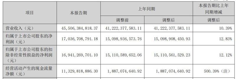 8月25日晚,五粮液披露2023半年报,报告期内,五粮液实现营业收入455.06亿元,比上年同期增长10.39%;归母净利润为170.37亿元,同比增长12.83%,继续保持A股白酒上市企业唯一一家7年营收两位数增长的记录。
