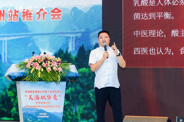 仁怀市酒业协会常务副会长、秘书长刘帮涛在推介会致欢迎辞时表示,“我们虽然身处长江中游、路远地偏,但我们一路向东、顺江而来,与众多仁怀同仁为苏州、为江苏捧掬献上仁怀产区的醉美酱香,一定能让仁怀产区的酱香产业从姑苏古城出发,在华东大地再发时代新芽、再涌时代浪花,进一步成就广大生产者、经销者、消费者的醉美酱香事业。”