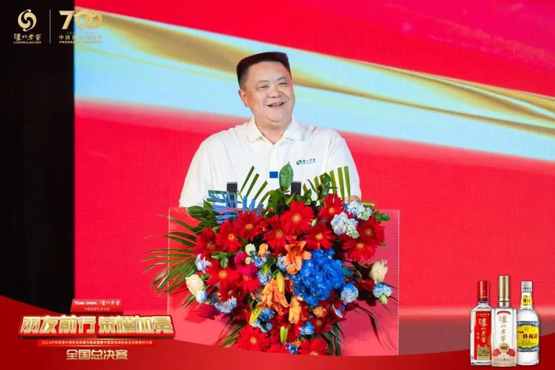 中国羽毛球协会群体部部长谭云龙发表讲话:“多年来,中国羽毛球协会与泸州老窖紧密合作,共同致力于羽毛球运动的推广与发展。将2024泸州老窖中国羽毛球城市挑战赛纳入中国羽毛球协会全民健身赛事合作伙伴,是协会对泸州老窖羽毛球赛事规范化、公正性、影响力的高度认可。”