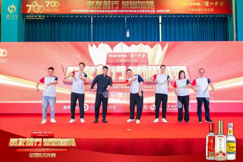 随后,蔡赟、刘雨辰与各位领导嘉宾共同为比赛开球,2024泸州老窖中国羽毛球城市挑战赛暨中国羽毛球协会全民健身积分赛全国总决赛正式开启。