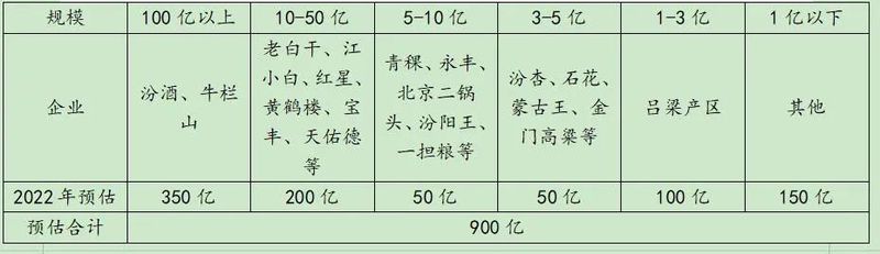 清香白酒产业未来5年发展格局,有望在吕梁产区实现1个400亿级企业、2个50亿级5个10亿级企业、N个1亿级的清香白酒产业梯队(1:汾酒;2:汾杏、汾阳王;5:晋泉..N:)。全国实现1个400亿级企业、1个200亿级、3个100亿级、5个50亿级的清香白酒产业梯队。