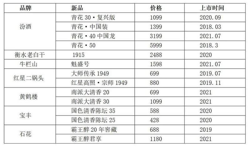 附表:2017年-2021年清香白酒上市次高端/高端品牌