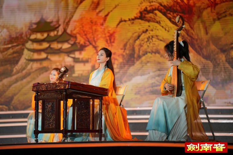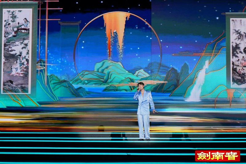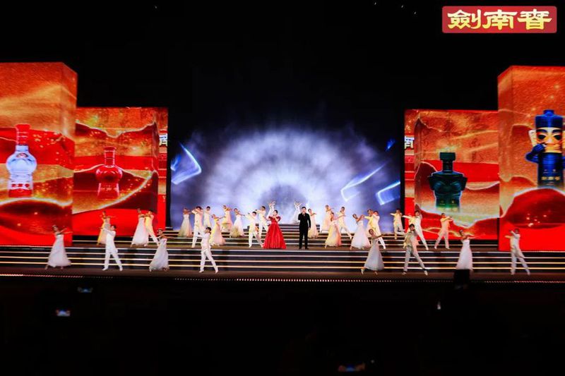 为了给观众呈现一台精彩绝伦又内涵深刻的演出,剑南春集团携手中国东方演艺集团倾力打造,邀请了多位艺术家登台演出。不仅有中国东方演艺集团优秀演员孟庆旸、张翰、徐晶晶、洪之光、西尔艾力等带来的舞蹈、歌曲、朗诵等节目,还特邀京剧梅派传人胡文阁演绎《贵妃醉酒》,琵琶演奏者柳青瑶演奏《百舞惊鸿》,青年歌手高天鹤演唱《梦回山海》。精彩的表演与美轮美奂的灯光舞美、无人机表演结合,让在场观众耳目一新。