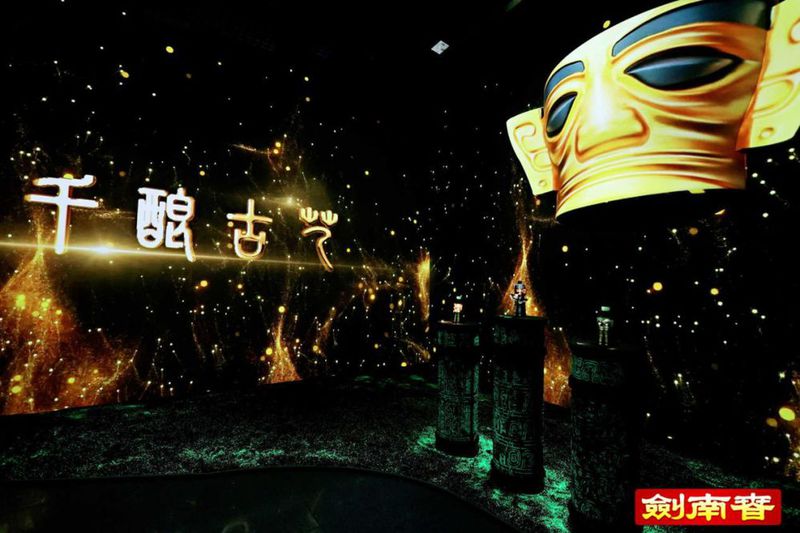剑南春精心打造的文化之旅,不仅有历史传承,还有科技创新。在剑南春酒庄内,一场结合全息、AR、智慧屏、电子互动等前沿科技,以全沉浸式及视听艺术的产品文化大秀正等待着每一位掀起幕帘的观众。穿过“陕西历史博物馆”悬挂在半空的不同字体的“酒”字,走过光影流转的神秘古蜀文明,在“曼城俱乐部”体验冠军捧杯的惊喜和快乐,静坐于浩瀚苍穹下,看斗转星移……这场文化与四大IP联合文创,在展现不同文化特点的同时,巧妙地展示了皇家剑南春、剑南春·青铜纪、剑南春·曼城冠军纪念酒、剑南春·天文纪等经典文创产品。