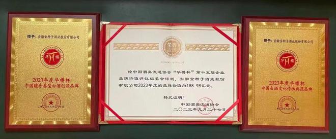 荣获“2023年度华樽杯中国馥合香型白酒创领品牌”,这是对金种子在馥合香品类创新方面的权威认可与肯定。