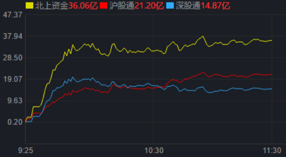 从资金面来看,3月15日上午,北上资金净买入金额达36.06亿元,其中,沪股通净买入21.20亿元,深股通净买入14.87亿元。