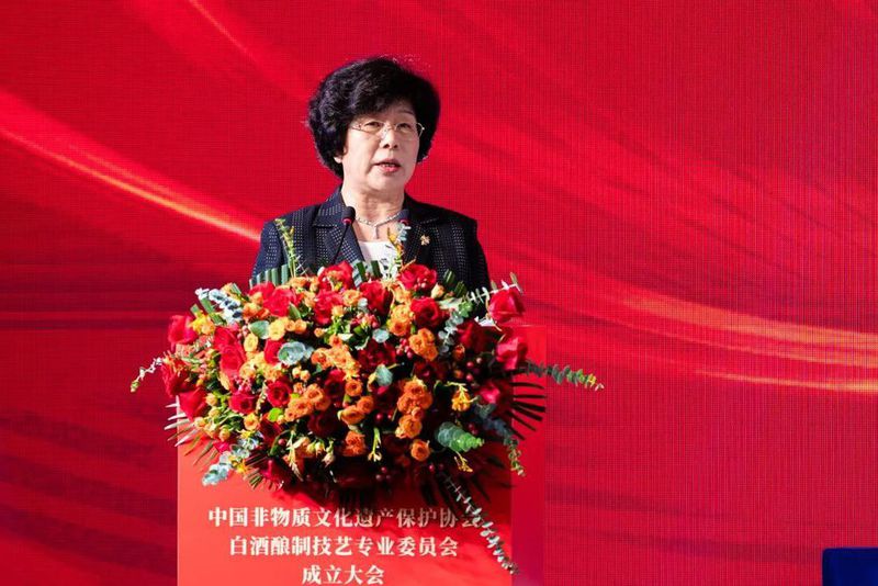 她期待同各位领导、专家和各界朋友一道,共担传承之责、共聚发展之力、共扬文化之风,一道用好白酒酿制技艺专委会这个平台,发挥其专业、协同、高效的优势,共同构建教育培训体系,将白酒酿制技艺这项非物质文化遗产保护好、传承好,共同推动白酒酿制技艺繁荣发展。