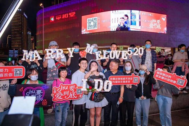 而520的全网告白活动则制造了一场盛大的浪漫,颇受年轻人喜欢。在长沙,一位男士通过本次活动精心策划求婚,并在大屏告白的浪漫助攻下,完成求婚。这是多么有爱的告白!