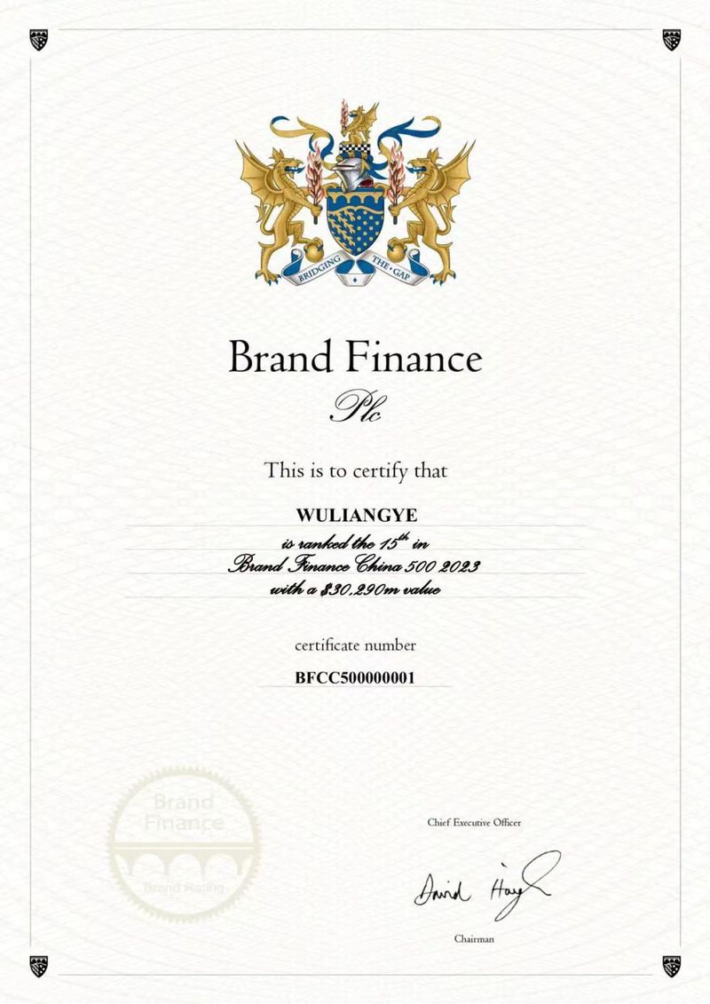 今年年初,全球领先品牌价值评估与品牌战略咨询公司Brand Finance在瑞士达沃斯发布《Brand Finance 2023年全球品牌价值500强》榜单。五粮液以302.9亿美元的品牌价值位列榜单第59位,品牌强度评级达到全球最高级别AAA+。