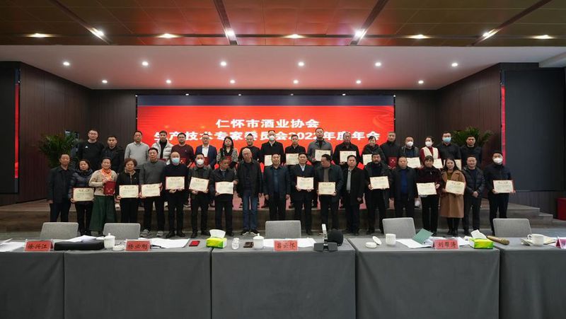 12月30日,仁怀市酒业协会生产技术专家委员会2022年会在贵州茅台镇文中酒业公司举行。仁怀市酒业协会会长吕云怀,仁怀市酒业协会常务副会长兼秘书长刘帮涛、仁怀市酒业协会副秘书长杨必刚、仁怀市酒业协会副秘书长张小波,国家级特邀白酒评委、贵州省白酒专家委员徐兴江,文中酒业公司总经理王纯陆等行业专家领导出席会议。