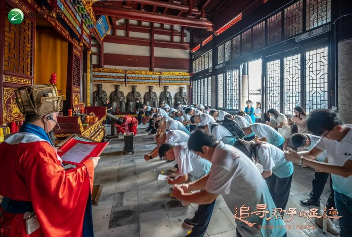 领导嘉宾们一同走进问津书院礼门、仪门、先儒祠、朱子祠、仲子祠、隐士祠、子贡祠等地参观,在大成殿前礼敬先贤,并聆听武汉大学国学院院长孙劲松教授带来的讲座——《问津书院的文化精神》,于白墙黛瓦下、碑林石刻间、文墨书香中,领略独具匠心的古代建筑艺术,感悟“耕读传家、崇文尚武、忠孝节义、传德报恩”、“求真、求理、求学”和“讲道论德、明体达用”的思想哲理和价值追求。