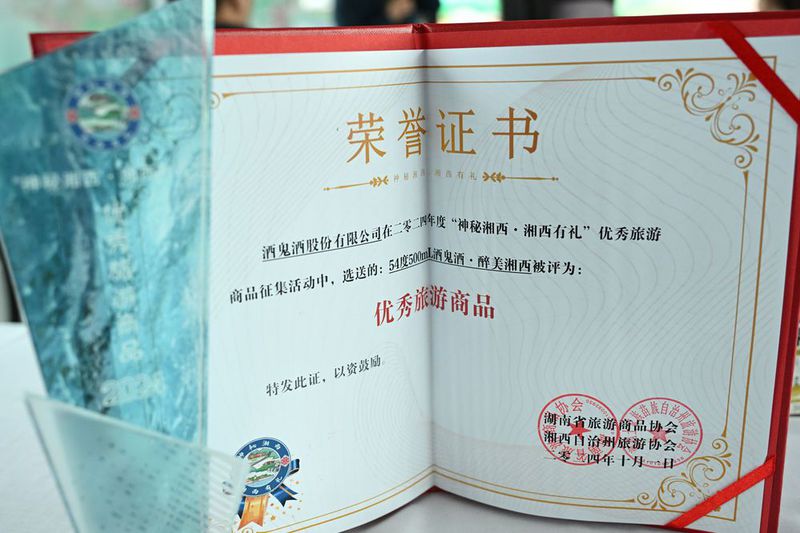10月10日,由湘西州文化旅游广电局指导,湖南省旅游商品协会和湘西州旅游协会联合举办的“神秘湘西·湘西有礼”优秀旅游商品征集活动落下帷幕。征集活动中,由酒鬼酒推出的54度500mL酒鬼酒·醉美湘西被评为湘西州优秀旅游商品。
