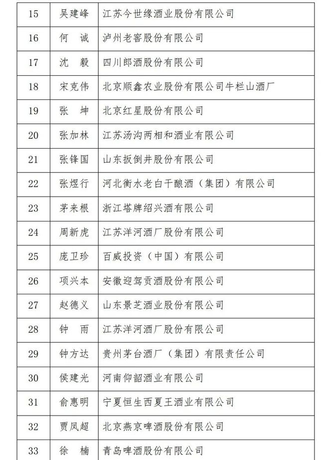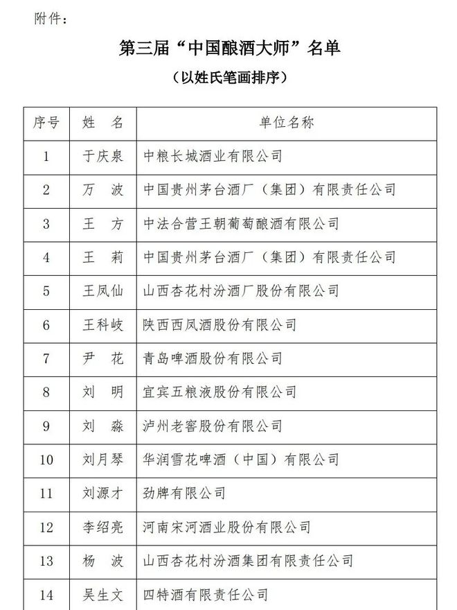 以下为第三届“中国酿酒大师”完整名单(按姓氏笔画排序,排名不分先后):