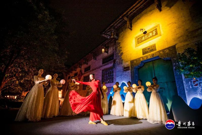 古朴的木制建筑与灯光交相辉映,如同今天的茅台一样,传统与科技完美融合,现实与虚拟交相辉映。