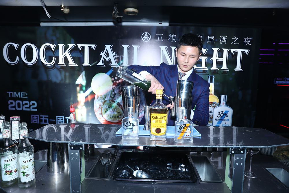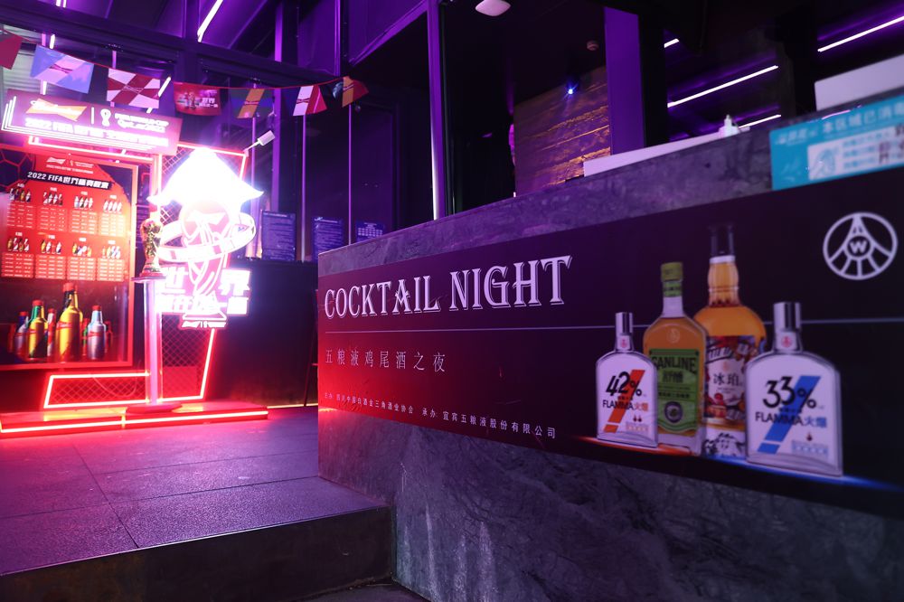 2022年12月9日,首场以“五粮液鸡尾酒之夜”为主题的活动在成都核心夜经济商圈339的TAO酒吧举行。让大赛优秀作品贴近年轻消费群体,邀请前几届获奖调酒师,以五粮液作为基酒,调制大赛独创作品,现场与消费人群进行互动,让白酒鸡尾酒走进时尚生活,引领未来潮流。